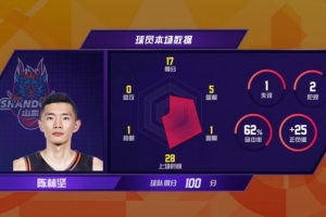 ​​1月2日,2025-2026赛季CBA联赛常规赛第9轮,山东高速主场100-85战胜新疆伊力特,收获2连胜。本赛季加入球队的前锋陈林坚发挥出色,8投5中,得到本队国内球员最高分17分,其中包含3记三分球。本场比赛过后,陈林坚职业生涯三分球命中总数达到了1000记,成功解锁个人新成就。