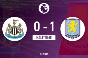 伤停补时4分钟。上半场比赛结束,纽卡斯尔联0-1阿斯顿维拉。