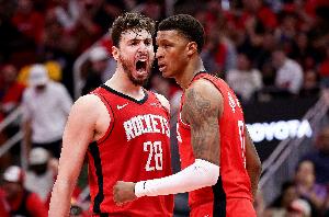 赛后,火箭球员小贾巴里·史密斯在个人社交媒体晒出申京的海报,配文:“全明星”。