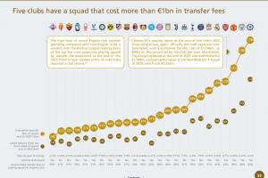 欧足联球队阵容组建花费转会费排行(单位/欧元):