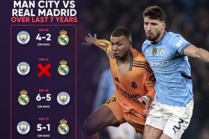 皇马与曼城再欧冠共有过交手15场,其中有12场是在淘汰赛中,淘汰赛皇马4次晋级,曼城2次。小组赛3场交手两队各1胜1平1负。