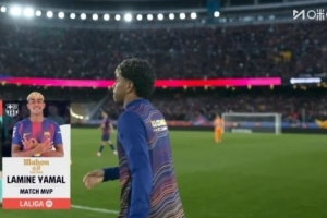 体育资讯3月1日讯 西甲第26轮,巴萨主场4-1战胜比利亚雷亚尔,赛后亚马尔当选全场最佳球员。