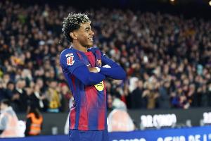 亚马尔在对比利亚雷亚尔的比赛中首次代表一线队上演帽子戏法,成为巴萨在西甲最年轻的戴帽球员。在离比赛结束还有15分钟时,亚马尔也心甘情愿地被换下。