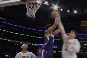 GIF-海斯篮板犯规 湖人挑战再次成功
