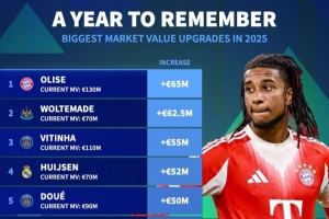 2025身价上涨榜:奥利塞压沃尔特马德居首 巴黎3将、皇马红军2人