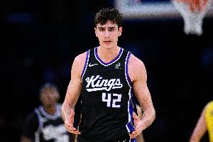 本场比赛,国王42号秀雷诺继续自己的出色发挥,进攻高效的同时篮板积极,拿到生涯第13次两双继续领跑所有新秀,首发出战36分钟,投篮12中10,罚球3中2,拿下22分10篮板(4前场篮板)4助攻2抢断的数据,不过也有4次失误和4次犯规。