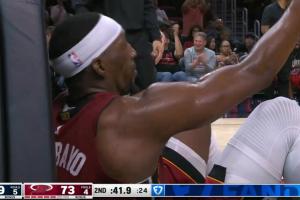 有单节统计以来,热火队史半场纪录是詹姆斯的37分,上半场历史最高是唐斯的44分。
